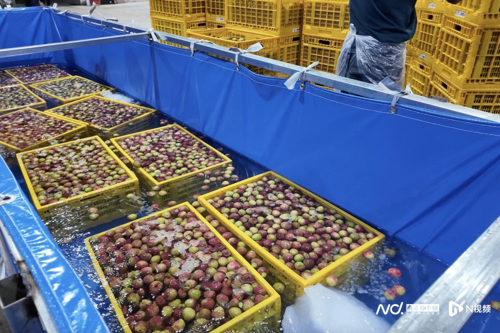 小蜂嗡嗡公司內(nèi),荔枝正進(jìn)行水冷降溫。南都見(jiàn)習(xí)記者 陳宇溪 攝