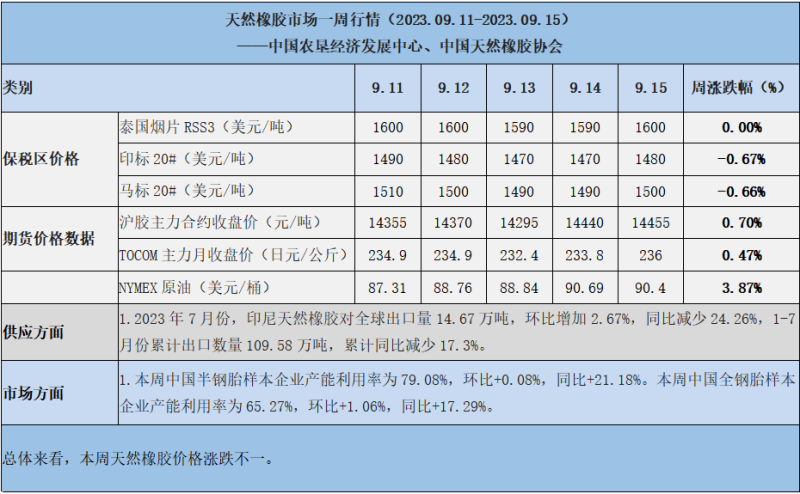 天然橡膠、大豆、玉米市場一周行情(2023.09.11-09.15)