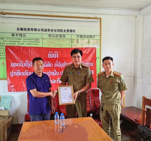 云橡投資有限公司波喬分公司負(fù)責(zé)人對(duì)老撾波喬省公安廳一直以來(lái)對(duì)公司工作的支持和幫助表示感謝,并將一如既往地履行好“替代種植”發(fā)展的責(zé)任,充分發(fā)揮技術(shù)、資金、人才的優(yōu)勢(shì),為“金三角”罌粟替代種植區(qū)域老百姓提供更多的就業(yè)崗位,為老撾脫貧減貧貢獻(xiàn)新的更大力量,推動(dòng)老撾天然橡膠產(chǎn)業(yè)持續(xù)健康發(fā)展。