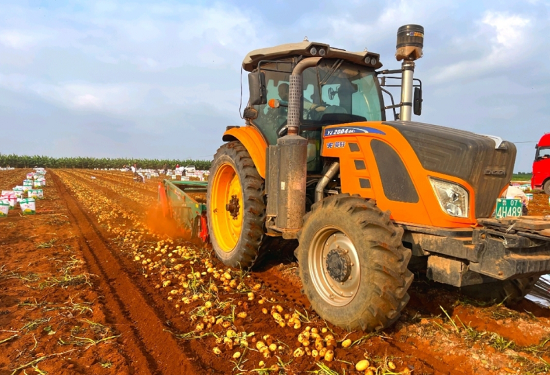 廣東農(nóng)墾現(xiàn)代農(nóng)業(yè)高質(zhì)量發(fā)展大會提出,培育壯大旱糧等新興大宗農(nóng)產(chǎn)品。近日,從廣東農(nóng)墾所屬廣前公司傳來好消息——由廣東省農(nóng)墾集團公司與北京一畝田新農(nóng)網(wǎng)絡(luò)科技有限公司共建的2700畝數(shù)字化馬鈴薯示范種植基地迎來了新一季開采。生機勃勃的田野上,機器轟鳴聲中,一顆顆個頭碩大、圓潤光滑的馬鈴薯破土而出。嘹亮的“豐收進行曲”鏗鏘奏響。