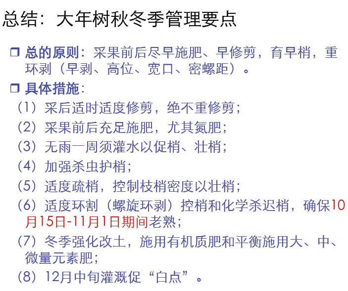 目標:末次秋梢適當提早老熟;控制抽發(fā)冬梢;殺滅抽發(fā)的冬梢。