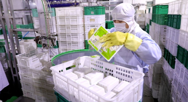 廠區(qū)里,冷藏車源源不斷將市民常吃的白玉韌豆腐、北豆腐、南豆腐、嫩豆腐、柴鍋豆腐以及豆芽、豆制品、豆?jié){等,配送到全市620多家商超門店。從大年初二復(fù)工以來(lái),白玉食品平均每天向北京市場(chǎng)供應(yīng)的豆腐、豆?jié){、豆制品、豆芽菜等產(chǎn)品累計(jì)約35萬(wàn)件,重量合計(jì)約123噸。