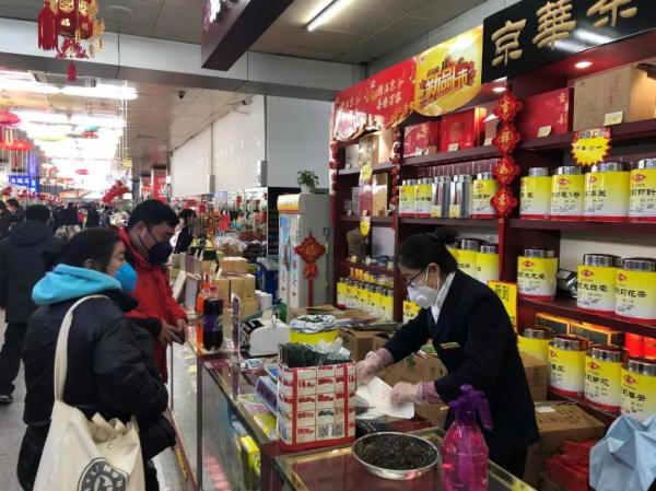 六必居公司有天源醬園、桂馨齋等多個(gè)老字號(hào)直營(yíng)門店,春節(jié)至今一致堅(jiān)持正常營(yíng)業(yè),醬菜、醬類、醬油、食醋、料酒、芝麻醬等各類常用調(diào)味品一應(yīng)俱全,確保充足供應(yīng),并根據(jù)百姓對(duì)白醋需求,增加白醋堆頭展賣,推出優(yōu)惠活動(dòng)。金獅醬油、龍門食醋等系列產(chǎn)品節(jié)日期間堅(jiān)持組織生產(chǎn),1月24日至2月13日,累計(jì)向市場(chǎng)供應(yīng)產(chǎn)品828噸。京華茶業(yè)各直營(yíng)門店正常開門營(yíng)業(yè),所售茶葉不斷貨、不漲價(jià),并推出買贈(zèng)促銷,讓利于民。
