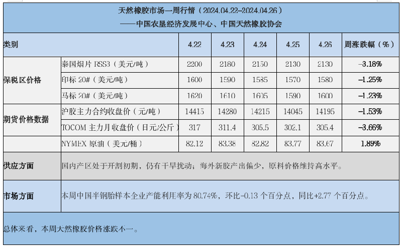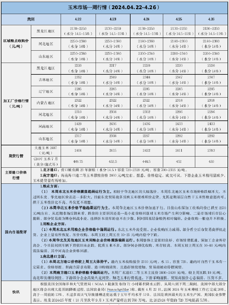 天然橡膠、大豆、玉米市場(chǎng)一周行情(2024.04.22-04.26)