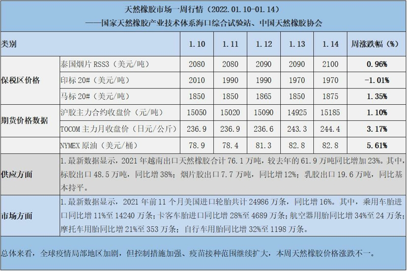 天然橡膠、大豆、玉米市場一周行情(2022.01.10-01.14)
