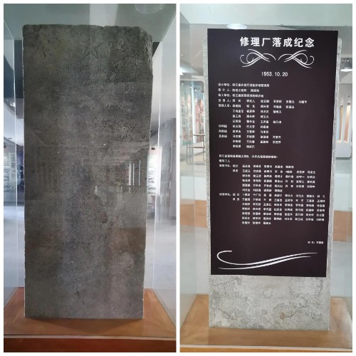 除了修理廠,當(dāng)年建設(shè)者們還新建了宿舍、食堂、辦公室、家屬房等合計(jì)近三千平方米的建筑物。廠房落成時(shí),大家歡欣鼓舞,都為自己能參加這樣的工程感到自豪,落成儀式從簡(jiǎn),只放了一掛鞭炮。為了紀(jì)念建場(chǎng)以來第一大工程,施工隊(duì)專門從富錦請(qǐng)了一個(gè)叫王朝瑞的石匠刻了一個(gè)碑,把所有建設(shè)者的名字都刻在了碑上,碑立在廠房正門西南側(cè),作為永恒的紀(jì)念。