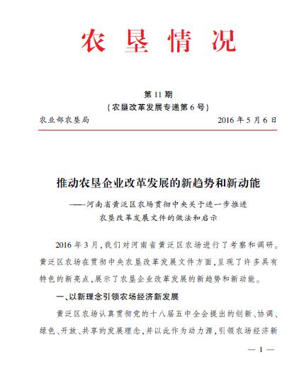 農(nóng)墾情況第11期(農(nóng)墾改革發(fā)展專遞第6號)