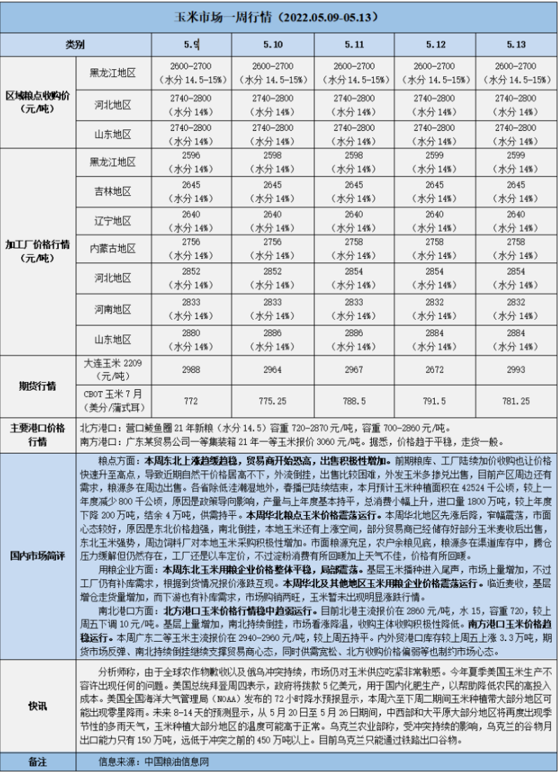 天然橡膠、大豆、玉米市場(chǎng)一周行情(2022.05.09-05.13)