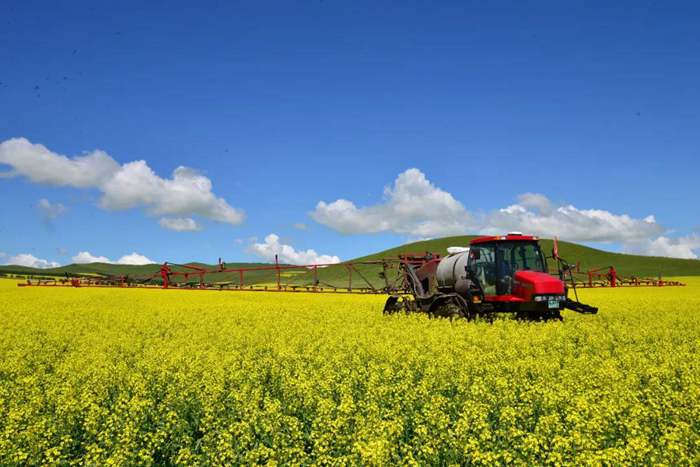 《你走起來(lái)真好看》 呼倫貝爾農(nóng)墾拉布大林農(nóng)牧場(chǎng)有限公司自走式噴藥機(jī)作業(yè)。王浩 攝