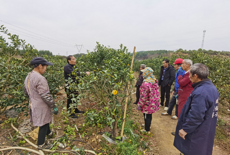 技術(shù)人員在沙塘鎮(zhèn)墾村開展脆蜜金桔修剪培訓(xùn)