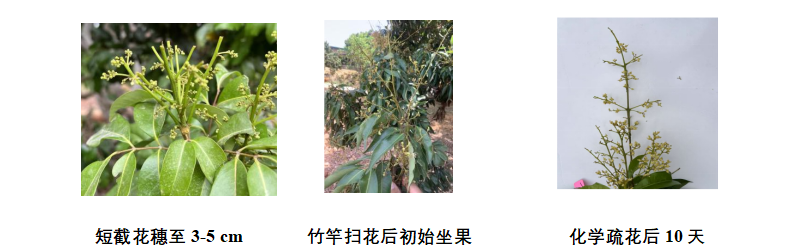 2026年中晚熟荔枝總體呈現(xiàn)中小年成花,但對于花穗超過15cm的果樹仍要進行疏花,保證營養(yǎng)供給。疏花方法分為物理疏花和化學(xué)疏花。物理疏花,以仙進奉荔枝為例,選用手持剪刀、電動疏花機疏花,可短截花穗至3~5 cm;選用竹竿掃花,可掃掉4/5的花量。其他品種可參照執(zhí)行。這種方法疏花量可控,風(fēng)險低,但勞動量大?;瘜W(xué)疏花,可選用 40%乙烯利5000倍液和15%多效唑800倍液混合噴施,或 6%乙氧氟草醚10000倍液和 15%多效唑800倍液混合噴施荔枝花穗。這種方法效率高,但技術(shù)門檻較高,要在當?shù)剞r(nóng)技人員或技術(shù)專家的指導(dǎo)下,嚴格把握用藥濃度和藥量,建議使用前選擇少量樹體進行試驗,確定無藥害后再大面積施用。若遇溫度高、光照強時要適當降低濃度,噴濕即可,不可反復(fù)噴施。