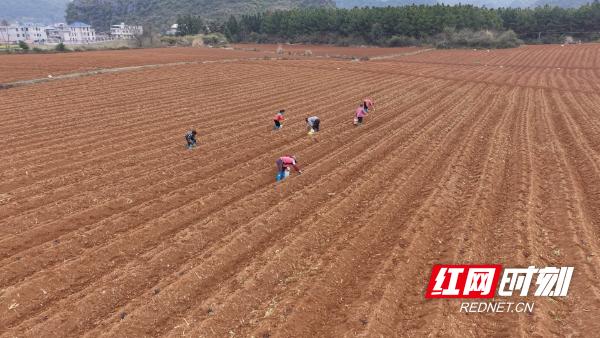 初春農(nóng)事忙,春耕啟新程。3月11日,在湖南省江永縣瀟浦鎮(zhèn)回崗村200余畝木薯種植基地里,翻耕后的田地起好一列列疏松壟臺(tái),20余名村民正有條不紊地移栽木薯。大家手持木棍丈量株距,將一節(jié)節(jié)木薯莖平放覆土,田間地頭一派繁忙的春耕生產(chǎn)景象。