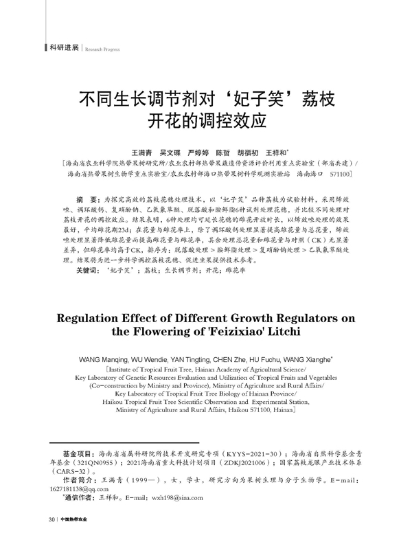 不同生長(zhǎng)調(diào)節(jié)劑對(duì)‘妃子笑’荔枝開(kāi)花的調(diào)控效應(yīng)