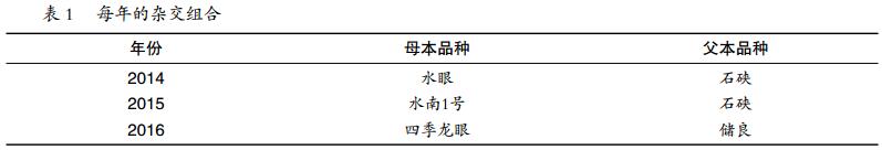 通過 2014—2016 年連續(xù) 3 年不同龍眼品種雜交試驗(yàn)表明(表 1):以多效唑處理水眼、水南一號(hào)、四季龍眼等品種后,一周內(nèi)大量雌花開,雌花集中開放時(shí)授粉 1 次即可,為了確保授粉效果可第二天再授粉 1 次。傳統(tǒng)雜交:水眼 2014 年 4 月 4 日開始去雄,4 月 7 日零星雌花開,到 4 月 9 日大量雌花開,開始采集花粉授粉到完成授粉,前后需要耗時(shí) 6 d;水南一號(hào) 2015 年 3 月 31 日開始去雄,4 月 2 日零星雌花開,4 月 4 日大量雌花開,采集花粉完成授粉需要耗時(shí) 5 d;四季龍眼 2016 年 4 月 20 日開始去雄,4 月 22 日大量雌花開,從開始采集花粉授粉到授粉完成,耗時(shí) 4 d。果實(shí)成熟時(shí)調(diào)查傳統(tǒng)雜交授粉與改良雜交授粉的單穗果粒數(shù)。2014 年,傳統(tǒng)雜交授粉的平均單穗果粒數(shù) 10.6 粒,改良雜交授粉的平均單穗果粒數(shù) 19.2 粒,比傳統(tǒng)雜交授粉的坐果率提高 81.13%;2015 年,傳統(tǒng)雜交授粉的平均單穗果粒數(shù) 5.2 粒,改良雜交授粉的平均單穗果粒數(shù) 16.1 粒,比傳統(tǒng)雜交授粉的坐果率提高 209.6%;2016 年,傳統(tǒng)雜交授粉的平均單穗果粒數(shù) 9.5 粒,改良雜交授粉的平均單穗果粒數(shù) 21.4 粒,比傳統(tǒng)雜交授粉的坐果率提高 125.3%;